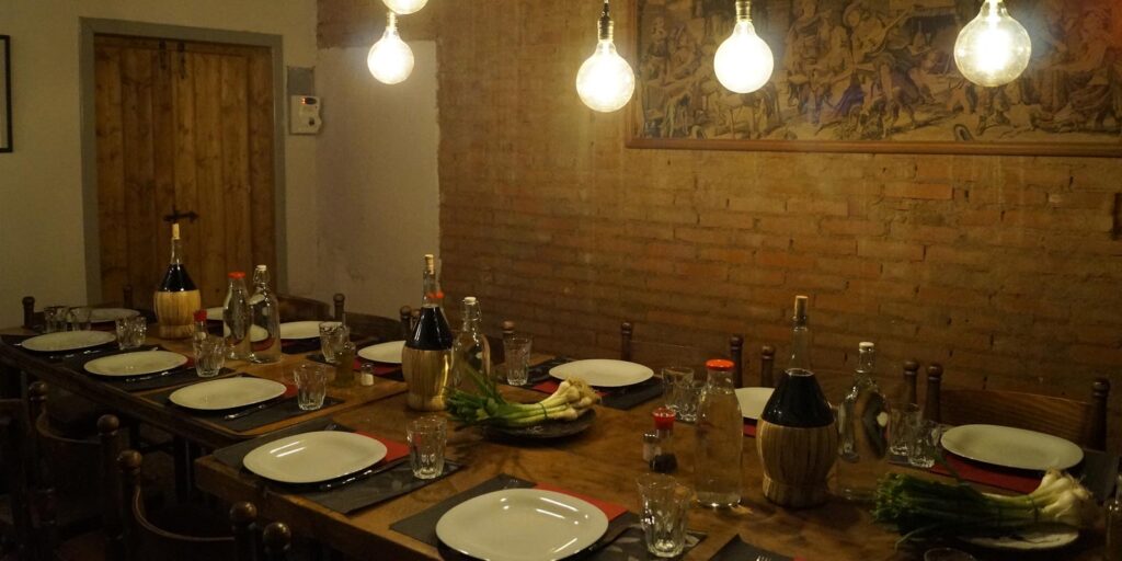 Un tavolo di legno, il calore di una stufa, bicchieri, che riportano alla casa dei nonni, gremiti con fiaschi di vino semplice e genuino, fanno da cornice alle nostre cene dipinte con tinte moderne sulle tele della tradizione.